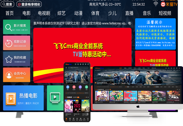 飞飞CMS管理系统,全网领先影视PHP管理系统,Thinkphp5.X开发框架架构,是一款100%开源视频系统,跨平台,多个终端入口,易于维护,无任何加密,安全有保障,是您最佳的建站工具,飞飞十几年开发团队打造最专业的视频系统,已成为全球影视行业领导者。